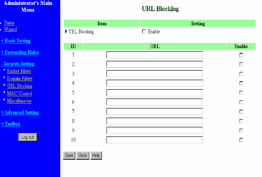 URL Blocking will block LAN computers to connect to pre-defined Websites.