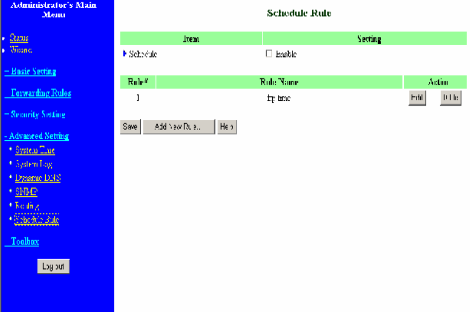 Schedule Rule can be applied to Virtual server and Packet Filter, for example: