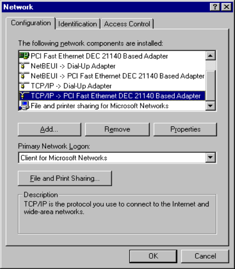6. The TCP/IP protocol shall be listed in the Network window. Click OK to complete the install