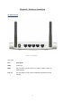 2.1.2. Rear Panel Figure 2-2 Rear Panel LED: LED Status WAN WLAN Link. 1~4 Function System status WAN port activity Wireless activity Color Status Green Blinking Green On The WAN port is linked. Blinking The WAN port is sending or receiving data. Blinking Sending or receiving data via wireless Green Link status Green alive. LAN port. Data Rate Green The corresponding LAN port is sending or receiving data. Data is transmitting in 100Mbps on the corresponding On LAN port.