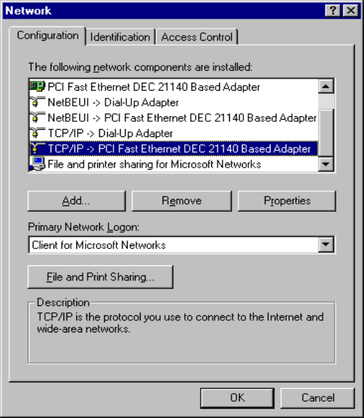6. The TCP/IP protocol shall be listed in the Network window. Click OK to complete the install