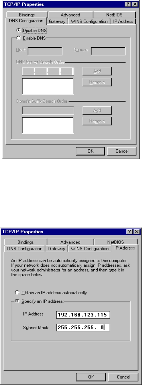 a. Select Specify an IP address in the IP Address tab. The default IP address of this