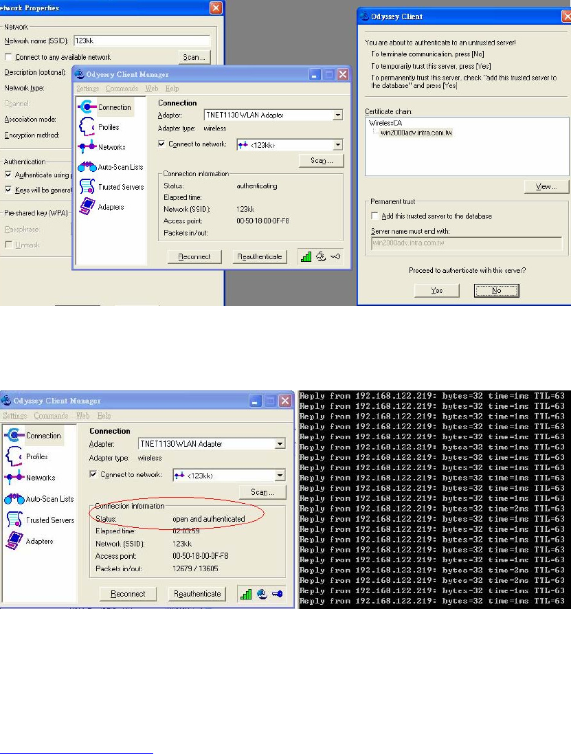 If successfully, the wireless client has to authenticate with Radius Server, like below:
