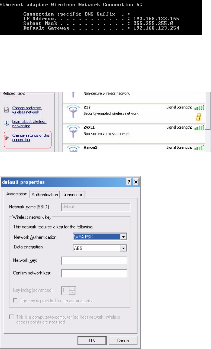 If SSID is default and click “Properties” to check if the driver of wireless client supports AES