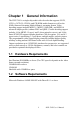 Contents CHAPTER 1 GENERAL INFORMATION ...................................... 1 1.1 HARDWARE REQUIREMENTS .................................................... 2 1.2 SOFTWARE REQUIREMENTS ..................................................... 2 1.3 BLOCK DIAGRAM ..................................................................... 3 Figure 1-1: Block Diagram............................................. 3 1.4 GPIO PIN DEFINITION .............................................................