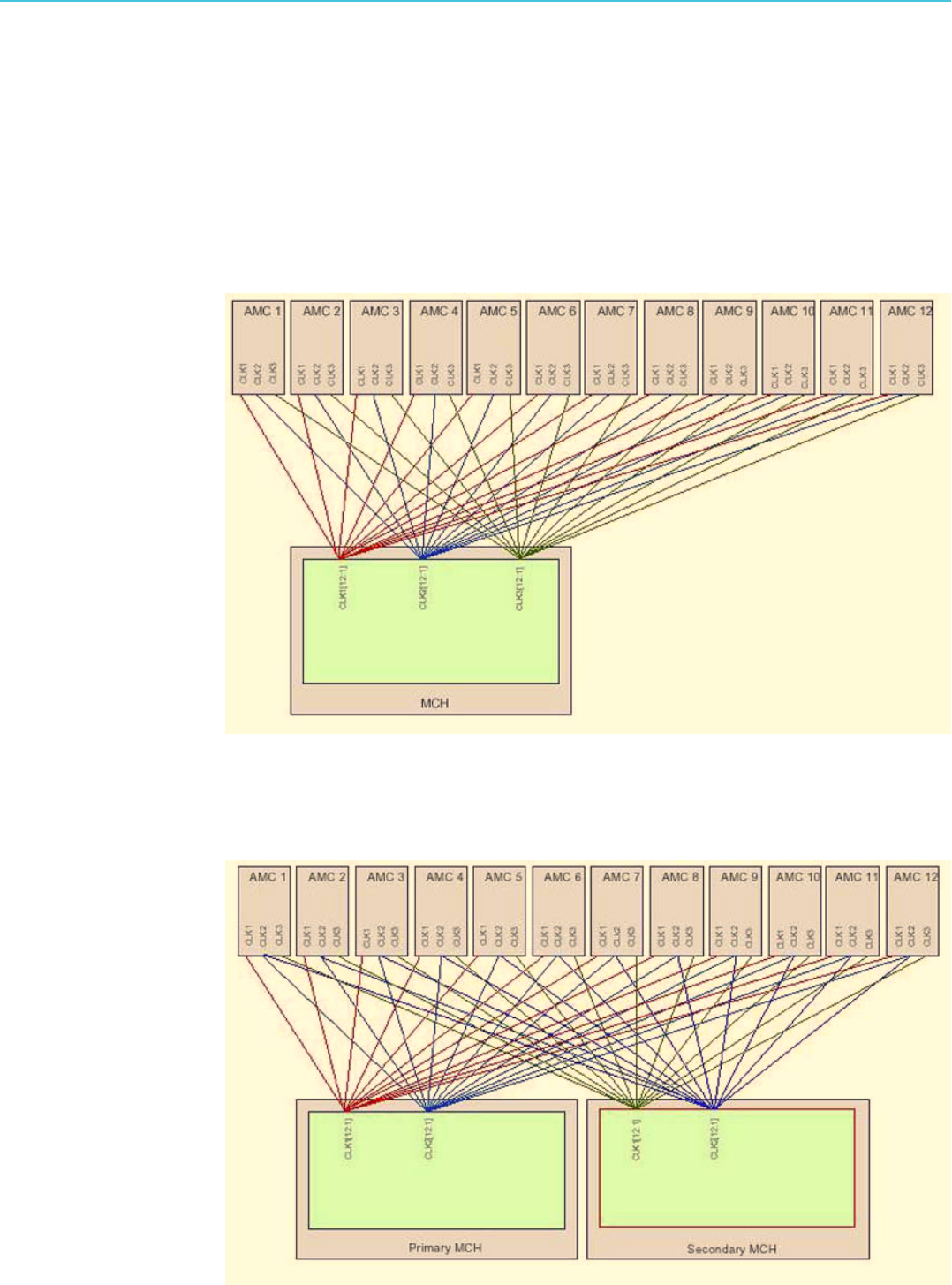 A MCH may support clock distribution for up to 3 clocks per module. Each AMC slot