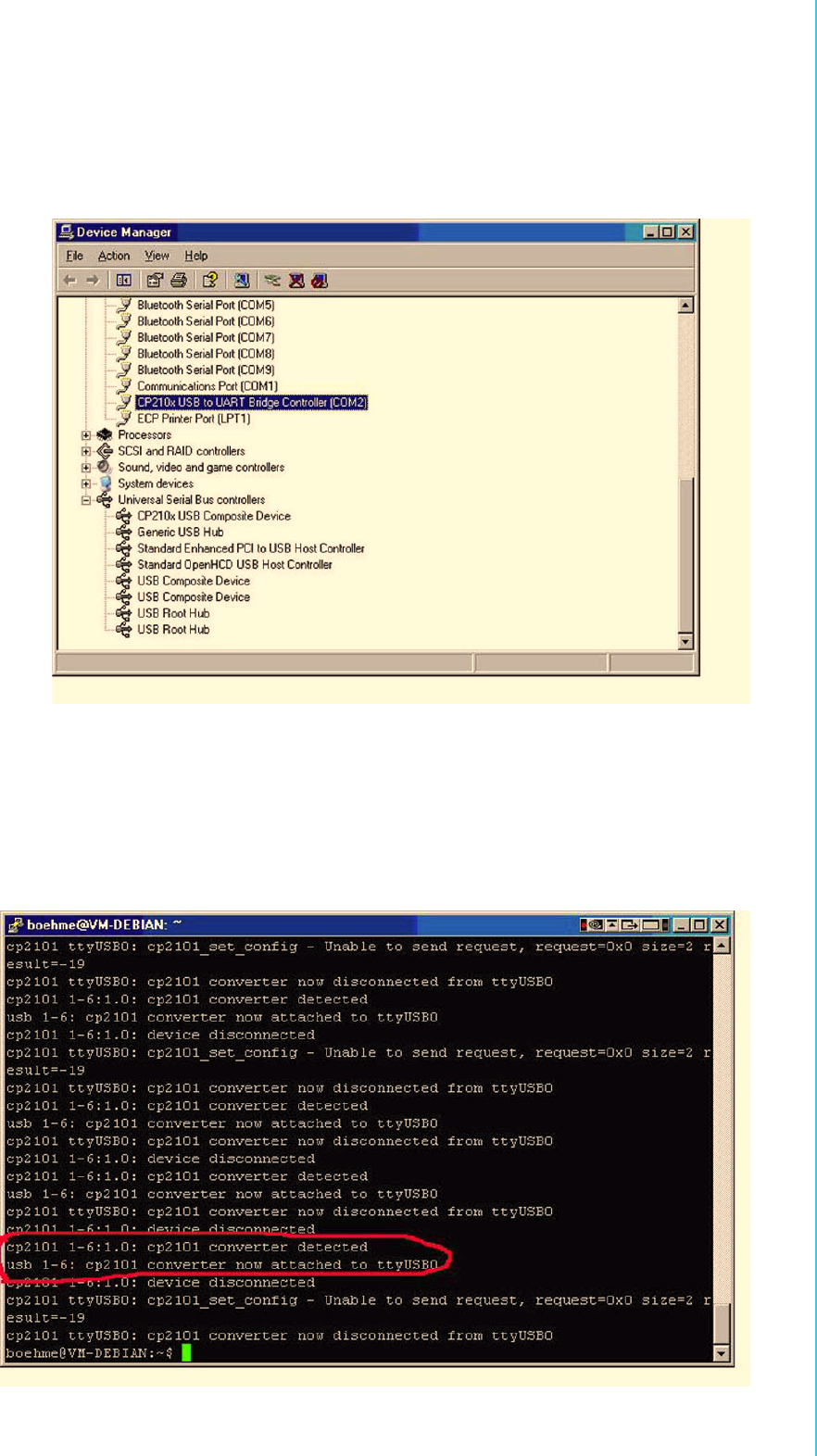 Figure 4.2 cp2101 converter detected when Linux driver installed successfully