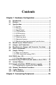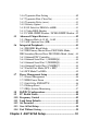 Contents Chapter 1 Hardware Configuration .............................. 1 1.1 1.2 1.3 Introduction ........................................................................2 Features ...............................................................................3 Specifications ......................................................................5 1.3.1 System .........................................................................5 1.3.2 Memory ...........................................................
