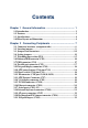 Contents Chapter 1 General Information ............................................ 1 1.1 Introduction ....................................................................................... 2 1.2 Features ............................................................................................ 3 1.3 Specifications .................................................................................... 4 1.4 Board layout and dimensions ............................................................