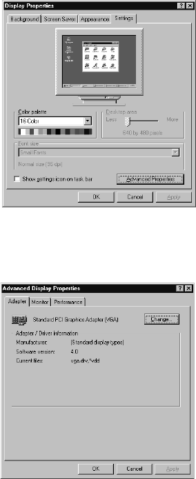 1. Select "Start", "Settings", "Control Panel", "Display",