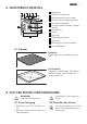 DEUTSCH 7 3. GERÄTEBESCHREIBUNG 1 2 3 4 5 1 Bedienfeld 6 2 Backofen-Einstellknopf 3 Betriebskontrolllampe/-symbol 13 5 4 3 2 1 7 8 4 Elektronischer Programmspeicher 9 6 Temperaturkontrolllampe/-symbol/- 10 11 7 Heizelement 12 5 Temperaturwahlknopf anzeige 8 Lampe 9 Ventilator 10 Rückwandheizelement 11 Unterhitze 12 Einhängegitter, herausnehmbar 13 Einschubebenen 3.1 Zubehör Kombirost Für Kochgeschirr, Kuchenformen, Braten. Universalblech Für Kuchen und Plätzchen.