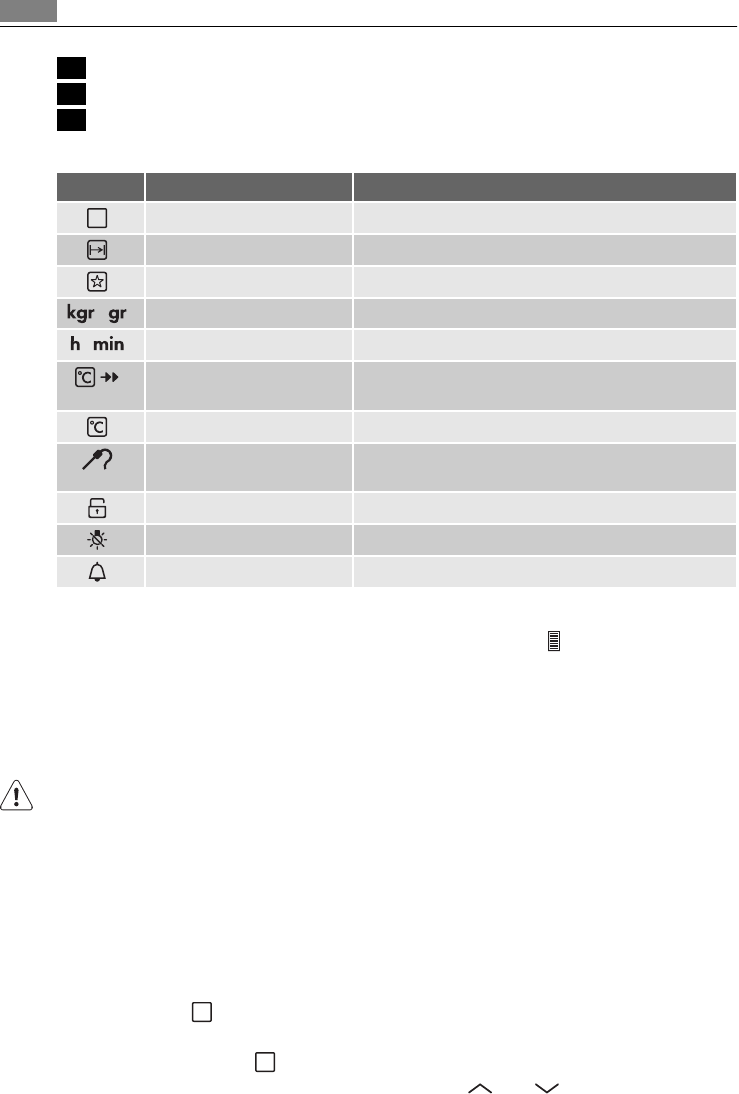 kg/g Backofenprogramm mit Gewichtseingabe.
