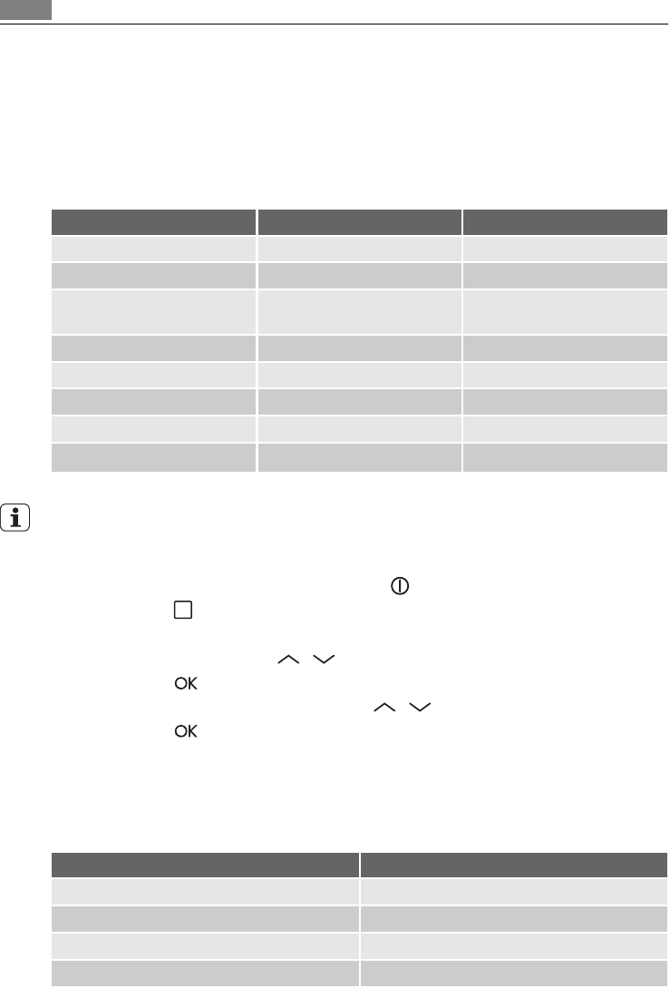 Die Anzahl der Einstellungen variiert je nach Modell. In der nachfolgenden Tabelle finden