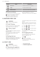 www.aeg.com Symbol Name Description Door lock The door lock function operates. Light You deactivated the light. Minute minder The minute minder function operates. 4.3 Heat up indicator If you activate an oven function, the bars When the appliance is at the set temperature, the bars go off the display. come on in the display. The bars show that the temperature in the appliance increases or decreases. 5. BEFORE FIRST USE WARNING! Refer to Safety chapters. 5.