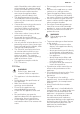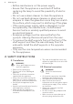 www.aeg.com 2.4 Care and cleaning WARNING! Risk of injury, fire, or damage to the appliance. • Before maintenance, deactivate the appliance and disconnect the mains plug from the mains socket. • Make sure the appliance is cold. There is the risk that the glass panels can break. • Replace immediately the door glass panels when they are damaged. Contact the Authorised Service Centre. • Be careful when you remove the door from the appliance.