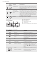 www.aeg.com Symbole Élément de menu Utilisation Modes de cuisson Contient une liste des modes de cuisson. Pyrolyse Nettoyage par pyrolyse. Réglages de base Vous pouvez utiliser cette fonction pour effectuer d'autres réglages. Programmes préférés Contient une liste des programmes de cuisson préférés de l'utilisateur, enregistrés par celui-ci. Sous-menu pour : Réglages de base Symbole Sous-menu Description Mise à l'heure Règle l'heure de l'horloge.