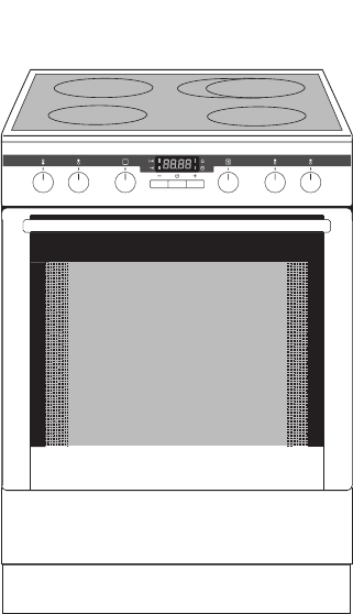 Control Panel Temperature Pilot Light Oven Power Indicator Time display Clock function buttons Oven Functions Temperature selector Hob Cooking Zone Control Hob Cooking Zone Control Cooking surface Singlecooking zone 1200W Double ring cooking zone 2200W Oven steam outlet Residual heat indicator Multi-purpose zone 2300W Singlecooking zone 1200W 9