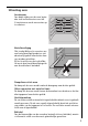 Oven in- en uitschakelen 0 1. Door draaien aan schakelaar "ovenfuncties“ de gewenste functie instel- len. 2. Door daaien aan schakelaar "temperatuurkeuze“ de gewenste temperatuur instellen. Het gele bedrijfscontrolelampje brandt zolang de oven in gebruik is. Het rode temperatuurcontrolelampje brandt zolang de oven opwarmt en gaat uit zodra de ingestelde temperatuur is bereikt. 3. Om de oven uit te schakelen schakelaar "ovenfuncties“ en schakelaar "temperatuurkeuze“ op de nul-stand draaien.