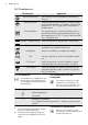 www.aeg.com 5.2 Ovenfuncties Ovenfunctie Binnenverlichting Applicatie Het lampje activeren zonder een bereidingsfunctie. Multi hetelucht Voor het bakken op maximaal 3 niveaus tegelijkertijd en het drogen van voedsel. Stel de temperatuur 20 - 40 °C lager in dan voor Boven + onderwarmte. Pizza hetelucht Om gerechten op 1 niveau te bakken met intensief bruineren en een krokantere korst. Stel de temperatuur 20 - 40 °C lager in dan voor Boven + onderwarmte.