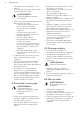 FRANÇAIS • Certaines pièces de l'appareil sont électrifiées. Placez l'appareil se façon à éviter que l'on puisse toucher les pièces dangereuses. • Les côtés de l'appareil doivent rester à côté d'appareils ou d'éléments ayant la même hauteur. 2.2 Branchement électrique AVERTISSEMENT! Risque d'incendie ou d'électrocution. • L'ensemble des branchements électriques doit être effectué par un technicien qualifié. • L'appareil doit être relié à la terre.