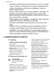 www.aeg.com • • • • • • • Jestliže je poškozený přívodní kabel, smí ho vyměnit pouze výrobce, autorizované servisní středisko nebo osoba s podobnou příslušnou kvalifikací, jinak by mohlo dojít k úrazu. Nože a další nástroje s ostrými špičkami vkládejte do košíčku na příbory špičkou dolů nebo vodorovně. Nenechávejte dvířka spotřebiče otevřená bez dozoru, aby na ně nikdo nespadl. Před čištěním nebo údržbou spotřebič vždy vypněte a vytáhněte síťovou zástrčku ze zásuvky.