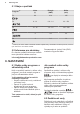 www.aeg.com 5.1 Verbruikswaarden Water (l) Energie (kWh) Programmaduur (min.) P1 9.9 0.91 195 P2 8 - 14 0.6 - 1.4 40 - 150 P3 13 - 15 1.3 - 1.5 140 - 160 P7 9 0.8 30 P9 4 0.1 14 Programma 1) 1) De druk en temperatuur van het water, de variaties in stroomtoevoer, de opties en de hoeveelheid vaat kan de verbruikswaarden veranderen. 5.2 Aanwijzingen voor testinstituten Stuur voor alle benodigde informatie over testprestaties een e-mail naar: info.test@dishwasher-production.
