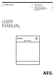 www.aeg.com • • • • • • • • Järgige kohalikku maksimaalset 15 taset. Kui toitejuhe on vigastatud, laske see ohutuse mõttes välja vahetada tootja, selle volitatud hooldekeskuses või lihtsalt kvalifitseeritud isiku poolt. Pange söögiriistad söögiriistade korvi teravama otsaga allapoole või horisontaalasendis söögiriistade sahtlisse teravama servaga allapoole. Ärge jätke seadme ust lahti, kui selle juurest ära lähete, sest keegi võib kogemata ukse taha komistada.
