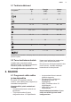 www.aeg.com Sisseehitatud seade J/E Jah 14. TÄIENDAVAD TEHNILISED ANDMED Mõõtmed Laius / kõrgus / sügavus (mm) 596 / 818 - 898 / 550 Elektriühendus 1) Pinge (V) 200 - 240 Sagedus (Hz) 50 / 60 baari (minimaalne ja maksimaal‐ ne) 0.5 - 8 MPa (minimaalne ja maksimaal‐ ne) 0.05 - 0.8 Külm või kuum vesi 2) maks. 60 °C Veevarustuse surve Veevarustus 1) Muud andmed leiate andmeplaadilt.