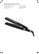 English 31 • Please follow the instructions as stipulated in the chapter “Cleaning and Care”. Overview of the Components 1 Buttons for temperature adjustment 2 Display, backlit (blue, red, green) 3 On / off switch Before Initial Use • Remove all the packing materials. • When the device is switched on for the first time there may be a slight smell. You should therefore operate the device for approximately 10 minutes without smoothing your hair. Ensuring sufficient ventilation! Commissioning 1.