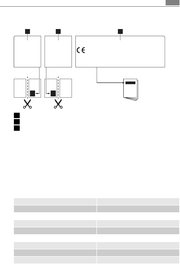 Labels supplied with the accessories bag