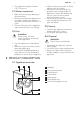 www.aeg.com 10.3 Check the position of the flap 1. Pull out the detergent dispenser until it stops. 2. Press the lever down to remove the dispenser. 1 2 3. To use powder detergent, turn the flap up. A With the flap in the position DOWN: • Do not use gelatinous or thick liquid detergents. • Do not put more liquid detergent than the limit showed in the flap. • Do not set the prewash phase. • Do not set the delay start function. 5. Measure out the detergent and the fabric conditioner. 6.