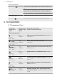 www.aeg.com Door lock indicator: B You cannot open the appliance door when the indicator is on. You cannot open the appliance door when the indicator flashes. Wait for some minutes before you open the door. You can open the door only when the indicator goes off. Child safety lock: C The indicator comes on when you activate this device. 5. PROGRAMMES 5.