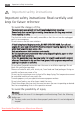 Important safety instructions 5 b) The hinges and door safety latches; check to make sure they are not broken or loose. c) The door seals and sealing surfaces; ensure that they have not been damaged. d) Inside the oven cavity or on the door; make sure there are no dents. e) The power supply cord and plug; ensure that they are not damaged. Never adjust, repair or modify the oven yourself.