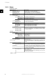 2. Display *) Nicht verfügbar. Menüstruktur – Setup – Fortsetzung Displayfunktionen GPRS-Verbindungseinr. SIM PIN-Code: 0000 Zugangspunktname: Name Benutzername: Benutzer Kennwort: Kennwort Roaming: Deaktiviert [-] Data-Warehouse-Service Upl.-Kan.: LAN Uploadzeit (h:m): 14:55 Protokoll-Upload starten [-] [-] [-] [-] Beschreibung 2 4-8 Zeichen Max. 24 Zeichen Max. 24 Zeichen Max. 24 Zeichen Erfordert Energieerzeugungsdaten über einen Zeitraum von mindestens 10 Minuten D.W. FTP-Serveradresse: www.