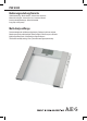 ENGLISH Note: Due to the significant fluctuation of body fat, it is difficult to attain a standard value. On average the optimal testing time is between 6 p.m. and 8 p.m, since the body fat remains very consistent during this period of time. First Use of the Machine Battery Compartment (on the back of the scales) Note: The battery in the battery compartment has been secured for transport with a foil. This prolongs the life of the battery. Please remove this foil to prepare the scales for initial use.