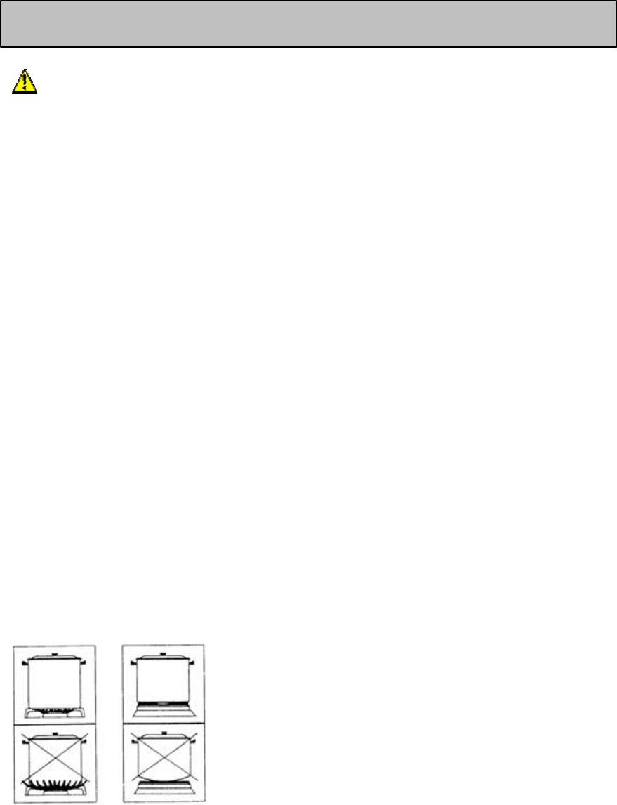 • Do not cook any food directly on the hot area. Avoid overflows of liquid and should they occur