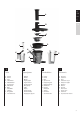 Operating instructions D GR NL F GB GB 4. Never insert your fingers or an object into the feeding tube. 5. After you have processed all ingredients and the juice flow has stopped, turn the knob to the position ‘0’ and wait till the filter has stopped rotating. Then remove the plug from wall socket. Cleaning 1. Switch the appliance off, remove the plug from the wall socket and wait until the filter has stopped rotating. 2. Remove the detachable parts from the motor unit. Remove the pusher.