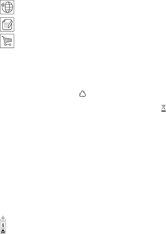 Recycle the materials with the symbol . Put the packaging in applicable containers to