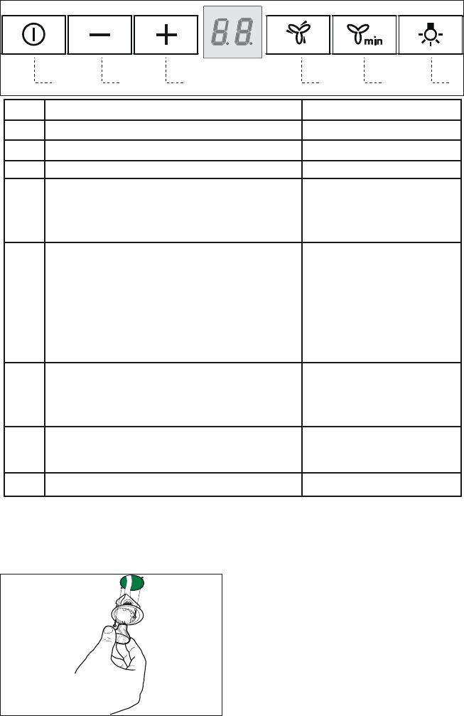 Schakelt de eerste snelheid van de zuigmotor in en uit. Toont de ingestelde snelheid