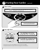 3 Starting Your Garden (continued) B Select Setting Press the SELECT button until you reach the type of plant you are growing (Vegetables, Salad Greens, etc.). Herbs Add Nutrients Replace Bulbs Salad Greens Flowers Water Low Vegetables Live Plants Note: Depending on the plant type selected, your AeroGarden 6 lights will automatically turn on and off at pre-programmed intervals. C Your Light Timer Your Light Timer is Set To Start 1 Growing Your Plants...