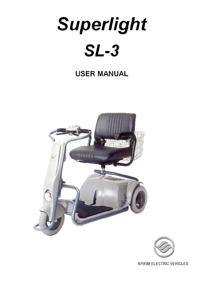 ________________________________________________________ 25 8.9 Emergency Braking in case of danger when driving forward, Squeeze Reverse Lever to stop. In case of danger when reversing - squeeze the Forward Lever. This may cause abrupt and excessive deceleration which in turn may cause injury to user and damage to the SUPERLIGHT. WARNING Persons with impaired capacity and/or untrained persons should not operate the SUPERLIGHT under any conditions.