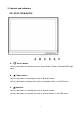 3. Controls and indicators SC-17P/SC-19P MONITOR A. “ ”Source button Press the button to show source menu. Select DHMI, S-Video, VGA and VIDEO input signal B. “ ”Down buttons Press the buttons to scrolling the cursor to desired function. Press the buttons to decrease the value of selected function in sub OSD menu. C. “ ”Up button Press the buttons to scrolling the cursor to desired function. Press the buttons to increase the value of selected function in sub OSD menu.