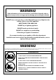 WARNING! If the information in these instructions is not followed exactly, a fire or explosion may result, causing property damage, personal injury or death. DO NOT store or use gasoline or other flammable vapors and liquids in the vicinity of this or any other appliance. WHAT TO DO IF YOU SMELL GAS DO NOT try to light any appliance. DO NOT touch any electrical switch. DO NOT use any phone in your building. Follow the gas supplier’s instructions.