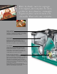- 4 . C u i r e à l ’éto uff ée La douce chaleur constante du four à mijoter vous permet de concocter des sauces plus onctueuses et des ragoûts plus parfumés. Vos plats cuiront lentement pendant des heures pendant que vous relaxerez. 5. G r i l l e r d u pa i n Même le pain grillé a meilleur goût avec la c uisinière Aga. Avec le grilloir spécial fourni avec votre cuisinière, vous obtiendrez le pain grillé comme vous l’aimez : doré et croustillant partout ou craquant à l’extérieur et moelleux à l’intérieur.
