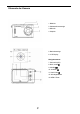 Elemente der Kamera 1. Blitzlicht 2. Selbstauslöseranzeige 3. Mikrofon 4. Objektiv 5. Betriebsanzeige 6. LCD-Display Navigationstaste 7. Senkrecht (OK) 8. Nach rechts 9. Abwärts 10. Aufwärts 11. Nach links 12. Wiedergabetaste 13.