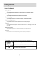 Getting Started Using This Manual Getting Started This section contains information you should know prior to using this camera. Basic Operation This section explains all recording features of the camera. Basic Recording This section explains how to record still images, movies and audio files. Other Recording Functions This section explains common operations when recording images. Playback This section explains playback, delete and edit functions of still images, movies and audio files.