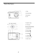 Parts of the Camera 1. Flash 2. Self-timer lamp 3. Microphone 4. Lens 5. Operation lamp 6. LCD display Five-way control button 7. Vertically (OK) 8. Rightward 9. Downward 10. Upward 11. Leftward 12. Playback button 13.
