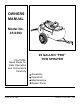 RULES FOR SAFE OPERATION Any power equipment can cause injury if operated improperly or if the user does not understand how to operate the equipment. Exercise caution at all times when operating equipment. 1. 2. 3. 4. 5. 6. 7. 8. 9. Read this owners manual carefully before attempting to assemble or operate this sprayer. Read your vehicle owners manual for operating and safety rules before using this equipment.