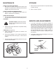 MAINTENANCE STORAGE CHECK FOR LOOSE FASTENERS 1. Before each use make a thorough visual check of the spreader for any bolts and nuts which may have loosened. Retighten any loose bolts and nuts. 1. Rinse inside of hopper and exterior of spreader and dry off before storing. 2. Store in a clean, dry area. CHECK FOR WORN OF DAMAGED PARTS 2. Check for worn or damaged parts before each use. Repair or replace parts if necessary. CHECK TIRE INFLATION 3. Check if tires are adequately inflated before each use.