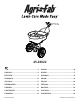 ENGLISH 9. SAFETY INFORMATION 1. 2. 3. Read the information on the chemical package for instructions and cautions on handling and applying. Wear eye and hand protection when handling and when applying lawn or garden chemicals. Never allow children to operate the vehicle or spreader. STORING 1. 2. 3. ASSEMBLY The meanings of symbols used in the illustrations are as follows: 1. Tighten now. OPERATION Do not use powdered lawn chemicals. They do not give a satisfactory or consistent broadcast pattern.